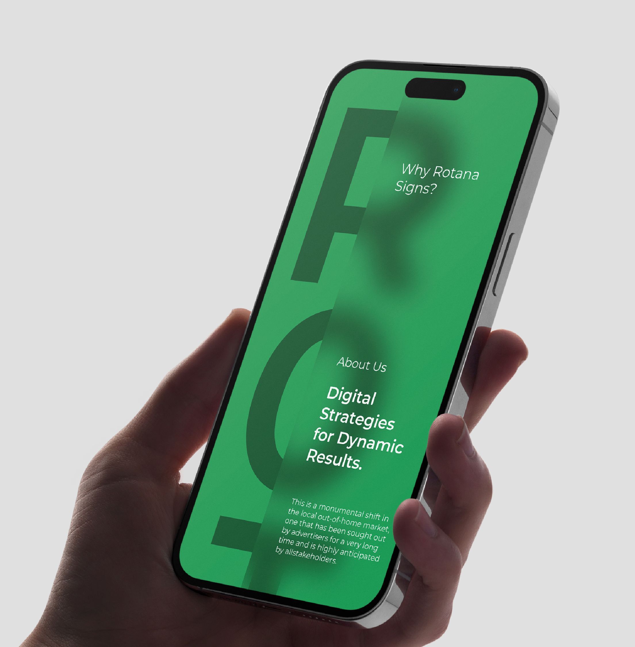 By twisting the circular shape of the logo, we created several elliptical forms that come together to create graphical elements representing a sense of evolution and progress, reflecting Rotana Signs' innovative approach to the outdoor industry.
