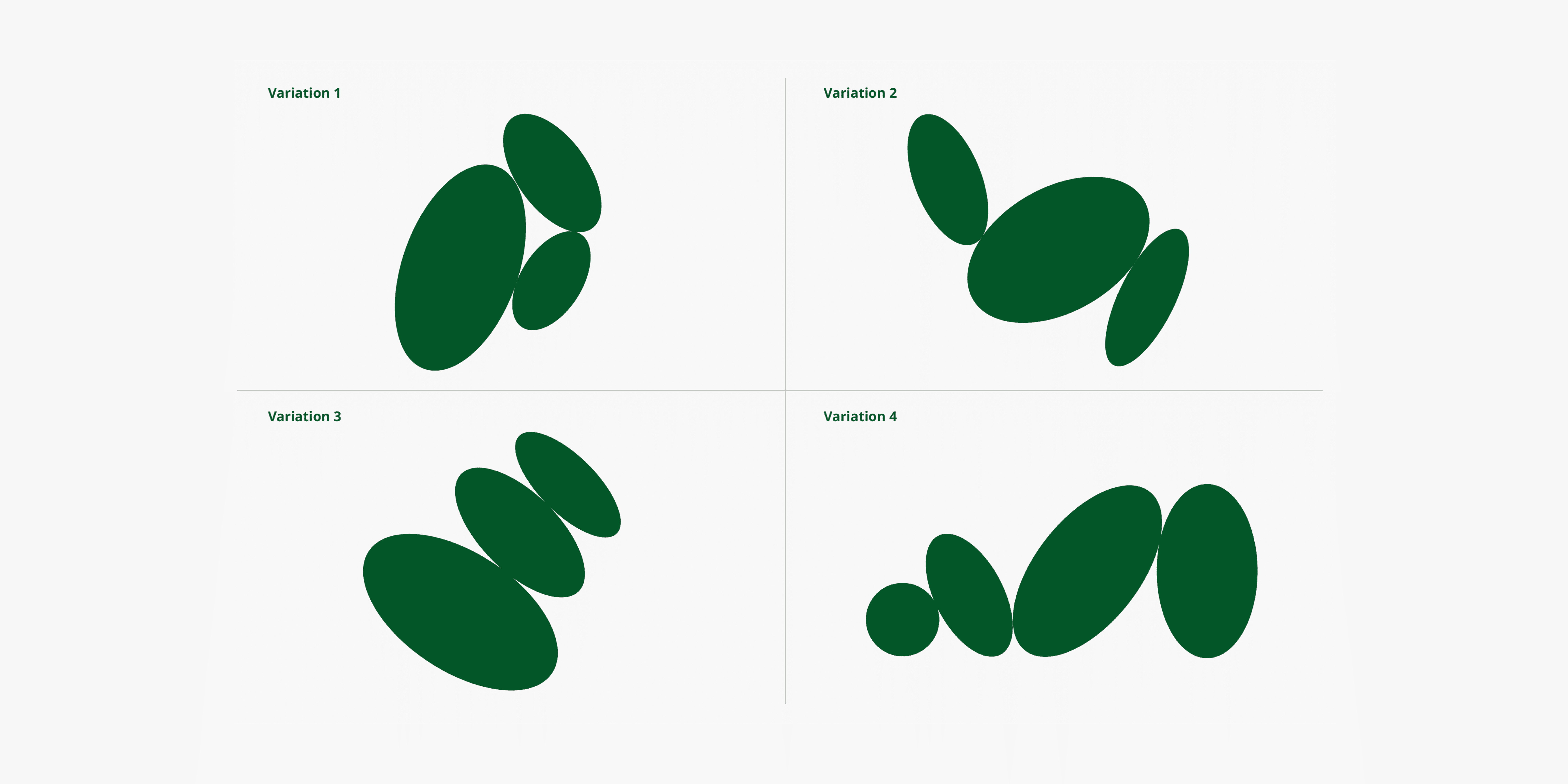 In the uplift exercise, the emblem was recreated using a grid structure to study the spacing and curvature of the emblem lines. The new design is flat and minimalistic, with no visual effects, which enhances its readability at all sizes and formats. This design also allows for flexibility in adapting color variations across different backgrounds. Additionally, some adjustments were made to the tone and shade of the green color.